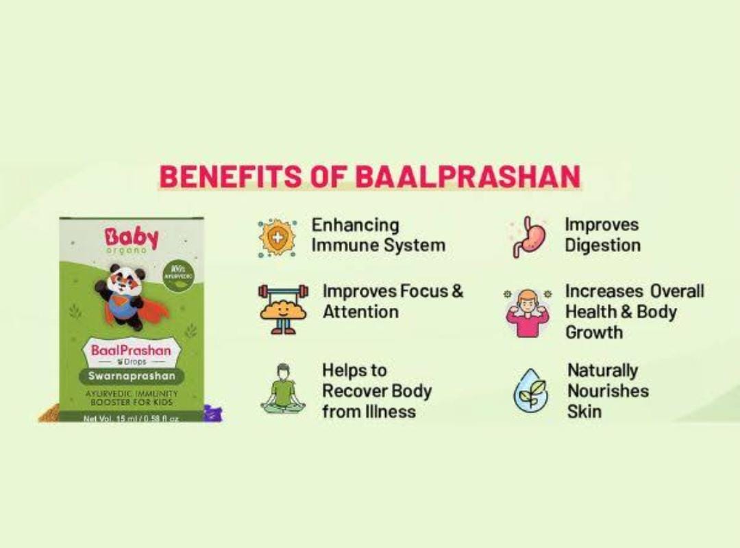 Babyorgano Swarnaprashan for Kids - Enriched with 24CT Gold Immunity Booster Drops Healthy Growth & Strength - 100% Ayurvedic - FDCA Approved - 15ml, Age 0-15 Years (Pack of 1)